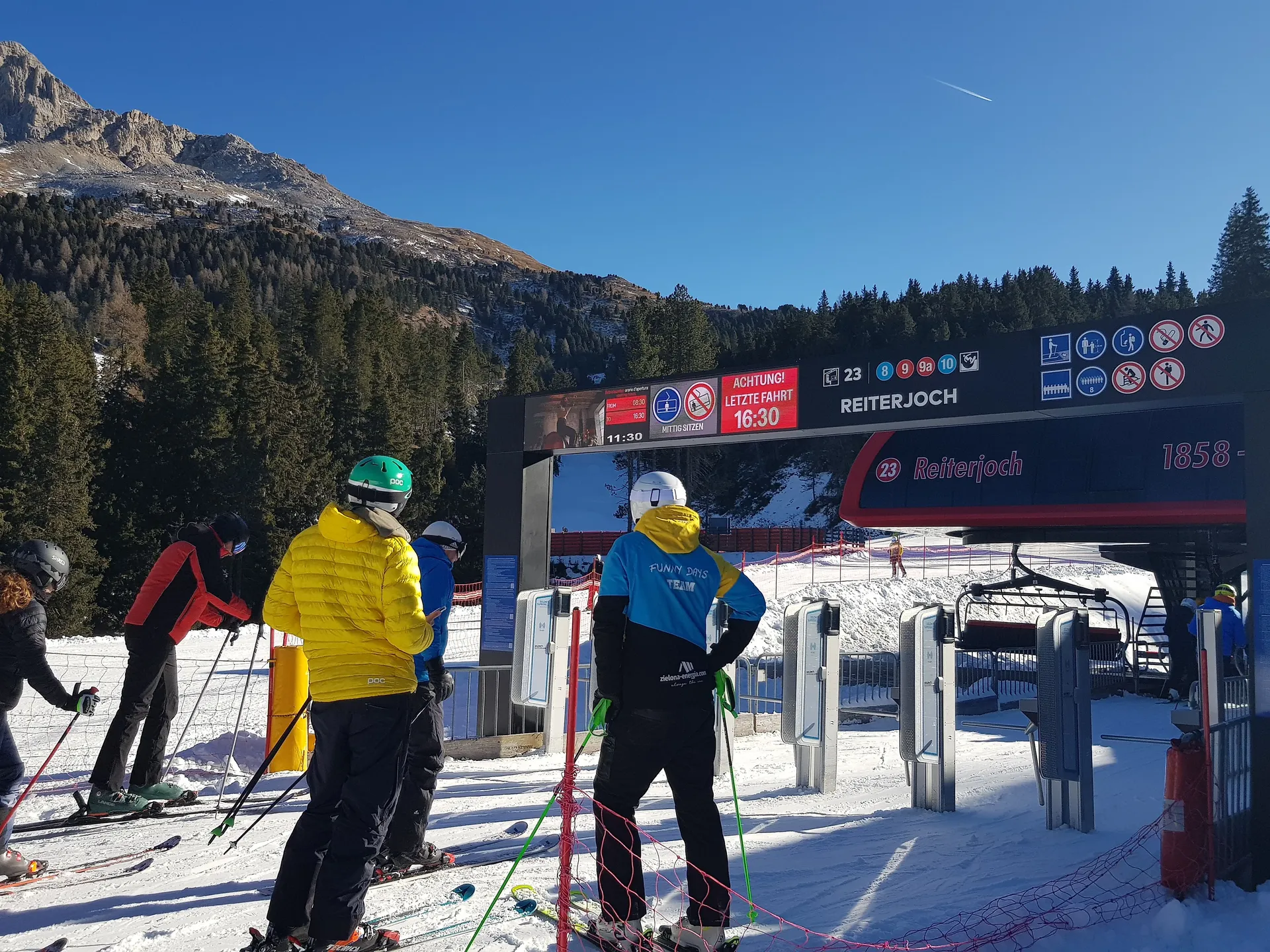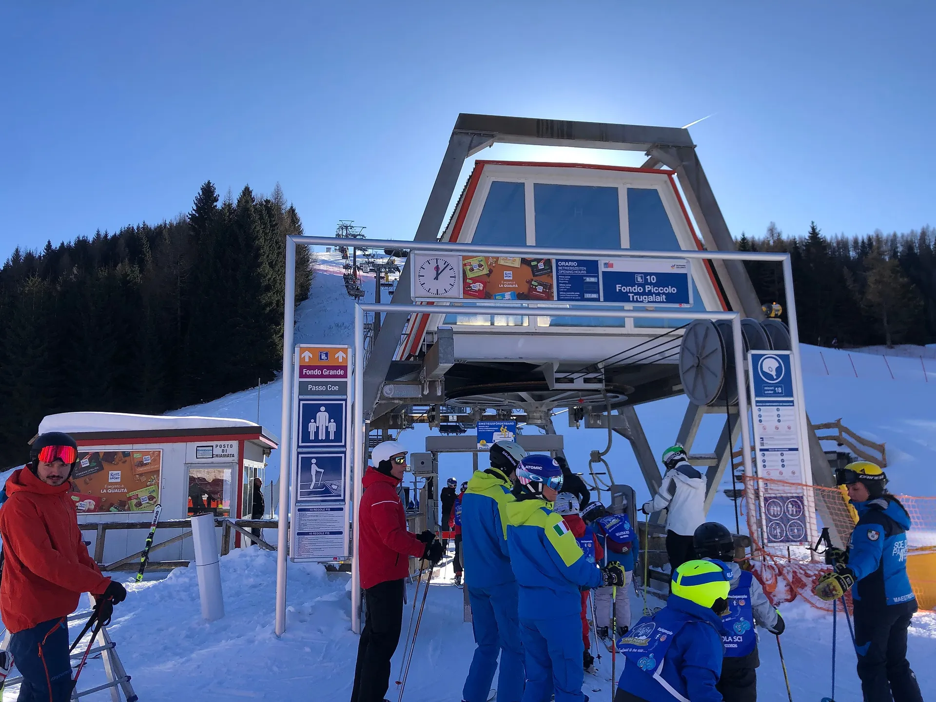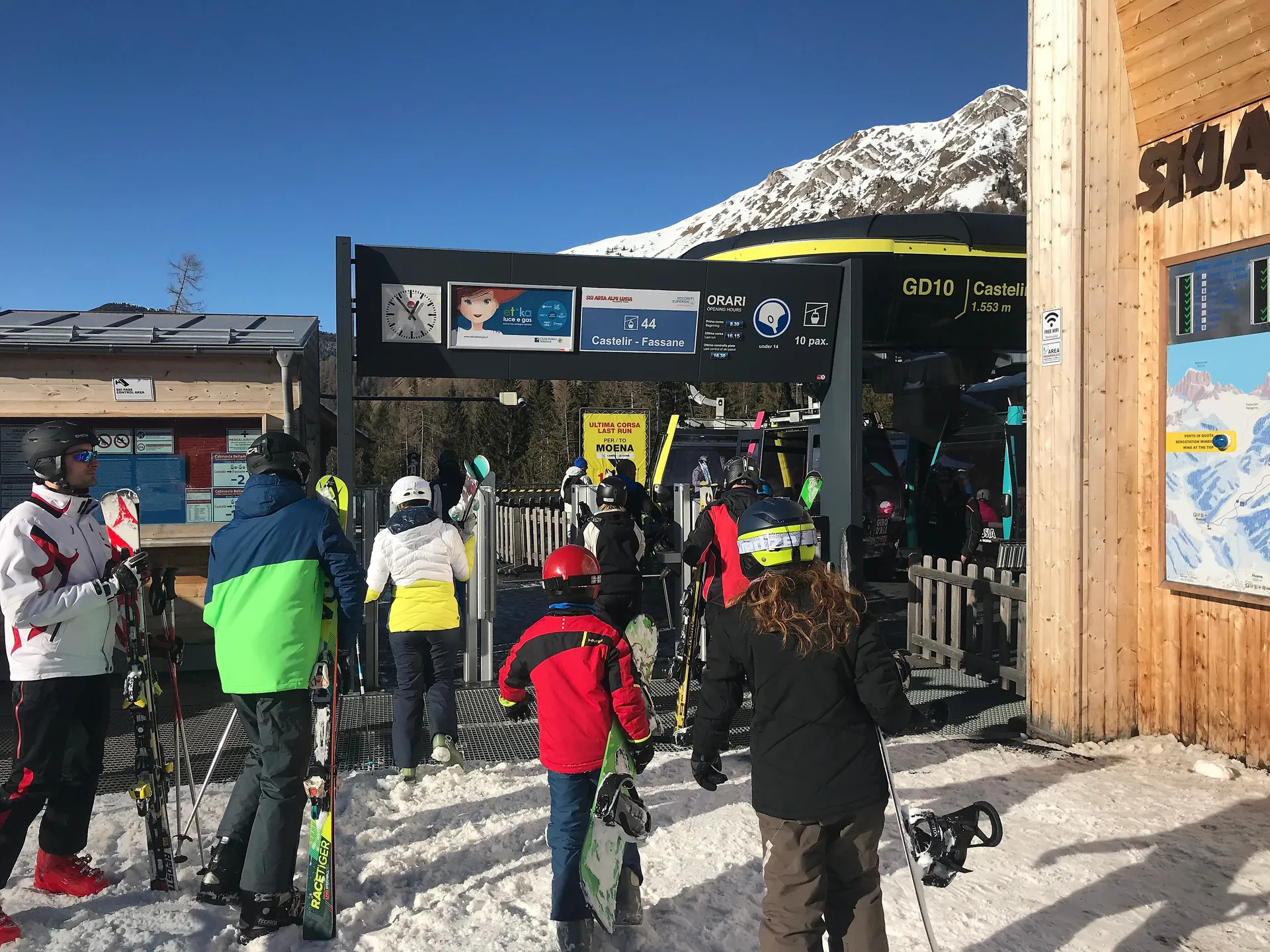 Le portique d'entrée représente l'un des points de contact les plus forts et les plus reconnaissables dans les stations de montagne. Situé dans les zones les plus fréquentées, telles que les entrées des remontées mécaniques, les stations de la vallée et les zones d'attente, il combine les fonctions d'information et de publicité, offrant à la marque une exposition constante et répétée tout au long de la journée.